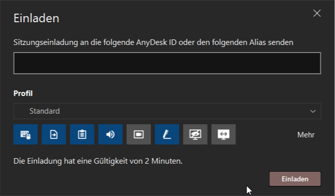 Klicken Sie im Programm auf "Einladen" und geben Sie die ID-Nummer ein, die Ihnen unser Mitarbeiter am Telefon nennt. Die Verbindung wird dann sicher hergestellt.